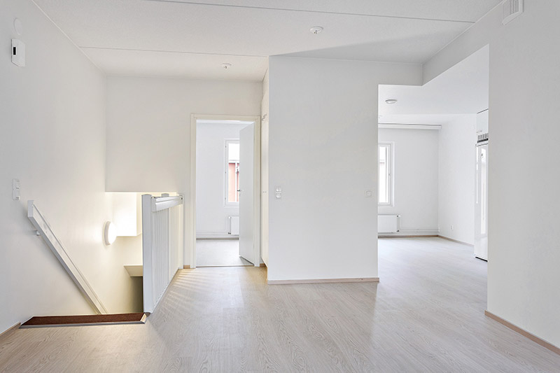 Asunnossa on kolme makuuhuonetta sekä runsaasti säilytystilaa, mikä tekee arjesta sujuvaa. Laatoitetun kylpyhuoneen kruunaa oma sauna. Asunnossa on pieni eteinen omassa kerroksessaan, josta noustaan portaita pitkin asuntoon.