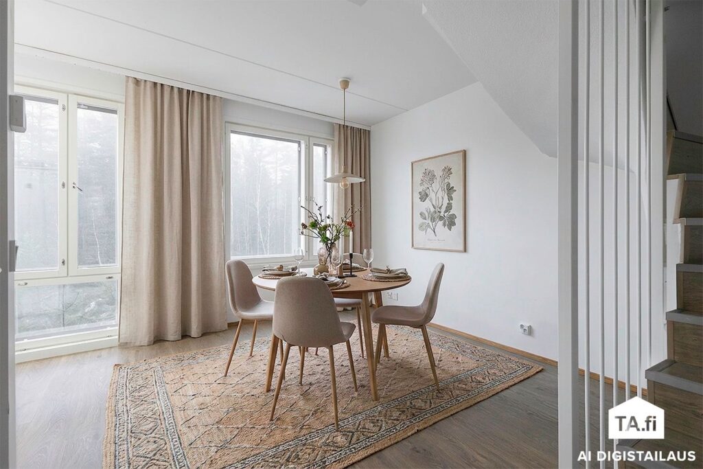 Viihtyisä kaksitasoinen neliö rivitalosta tarjoaa mukavaa ja toimivaa asumista. Asuntoon saavutaan oman terassin kautta, josta voit loihtia mieleisesi rentouttavan oleskelupaikan. Astuessasi sisään avautuu oikealla tilava olohuone, jonka vierestä löytyy erillinen wc. Alakerrassa sijaitsee myös kodin keittiö, jonka yhteyteen mahtuu hyvin ruokapöytä, luoden tilan yhteisille ateriahetkille. Yläkerrassa sijaitsevat kolme makuuhuonetta tarjoavat jokainen runsaasti kaappitilaa. Suurimmasta makuuhuoneesta on käynti yläkerran parvekkeelle, missä voit nauttia raikkaasta ulkoilmasta. Yläkerrasta löytyy myös kylpyhuone sekä kodin oma sauna, jossa voit rentoutua aina halutessasi. Autopaikka on myös varattavissa.