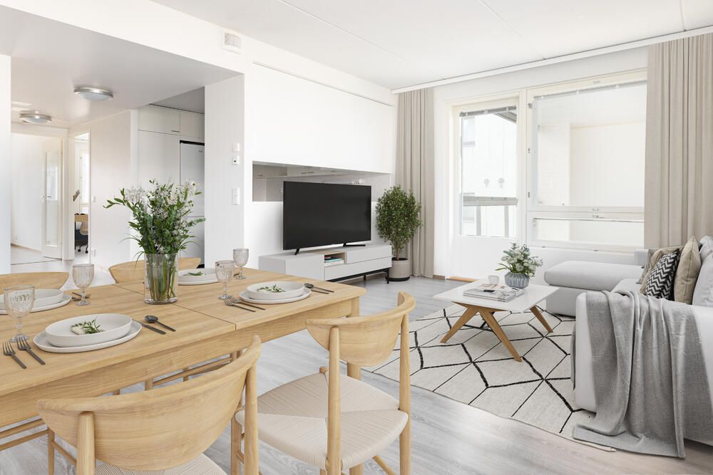 Tästä asunnosta löytyy olohuoneesta pellettitakka oivana tunnelman luojana. Läpitalon kulmahuoneistossa on ikkunoita kolmeen ilmansuuntaan. Asunnossa on oma vaatehuone ja kylpyhuoneen lisäksi erillinen wc.