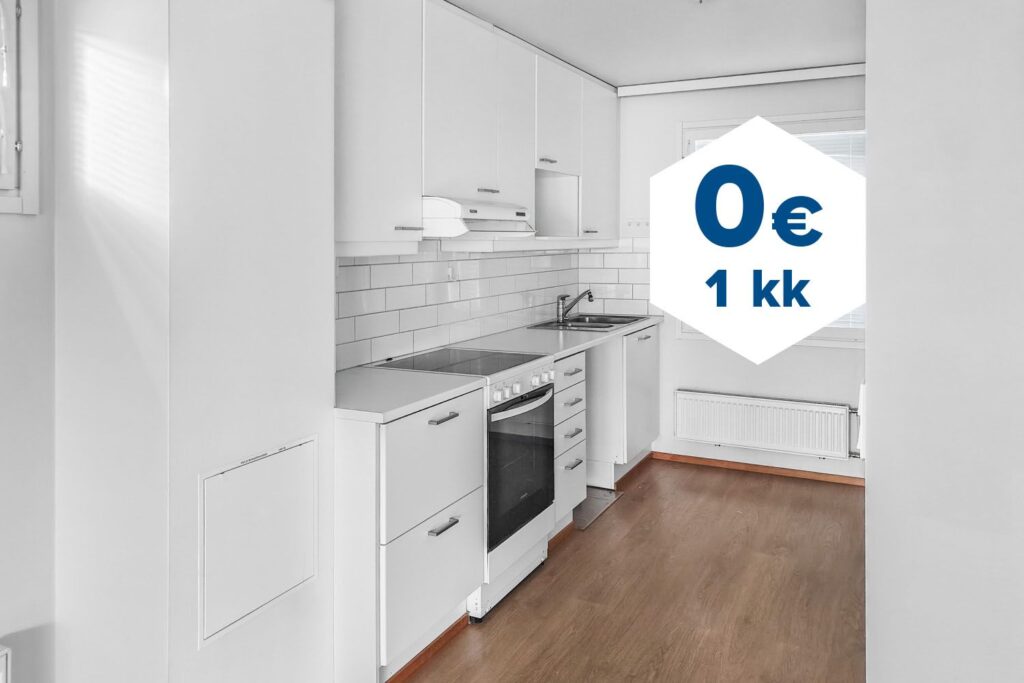 Tee sopimus nyt – saat ensimmäisen kuukauden käyttövastikkeen hintaan 0 €. Etu on voimassa 15.4.2026 saakka ja koskee vain vapaita asuntoja ja uusia asiakkaita. Vesi- ja autopaikkamaksut normaalisti.