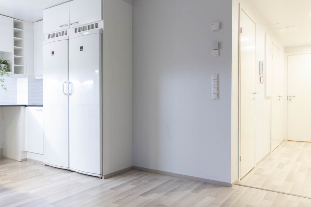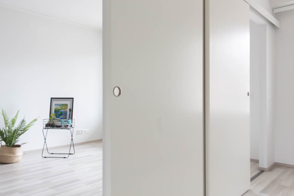 Ylimmän kerroksen suuri kaksio. Vaatehuone ja oma sauna tuovat asumismukavuutta, samoin koko huoneiston levyinen, suuri lasitettu parveke metsänäköalalla. Eteisessä ja makuuhuoneessa asennettu upeat peililiukuovet kaapistoihin muutostyönä. Huoneisto on heti vapaa!