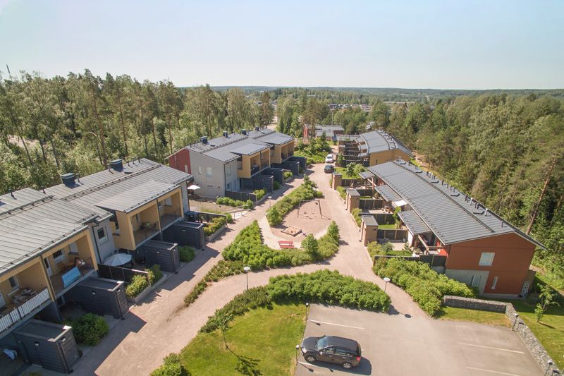 Iso 5h (110,5 m²) rivitalon päätyasunto rauhallisella sijainnilla. Sisäänkäynnin yhteydessä iso terassi ja piha, lisäksi oma varasto. Yläkerrassa sijaitsee iso olohuone keittiö, wc/suihku, sekä makuuhuone. Alakerrassa sijaitsee terassi josta näkymä suojaisalle metsä/kallio alueelle, makuuhuoneet ja saunatilat.