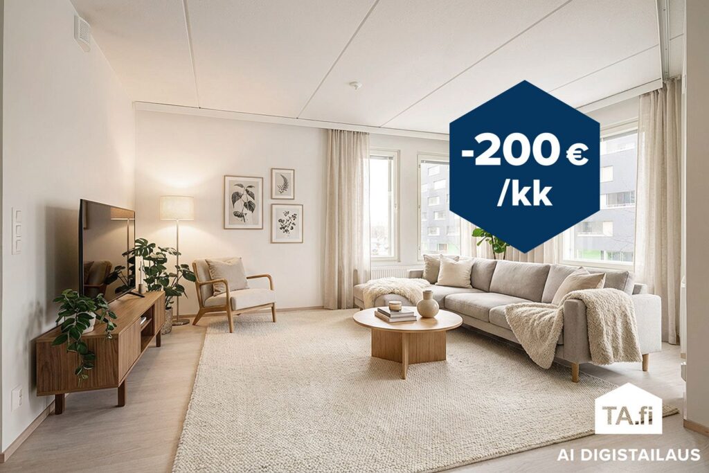 Kampanjaetu uusille asiakkaille! Saat 200 € alennuksen tämän asunnon kuukausittaisesta käyttövastikkeesta vuoden 2026 loppuun asti. Etu koskee uusia sopimuksia, jotka allekirjoitetaan viimeistään 31.5.2026. Alennus myönnetään kuukausilta, joilta käyttövastiketta kertyy vähintään 15 päivältä. Lue tarkemmat kampanjaehdot.