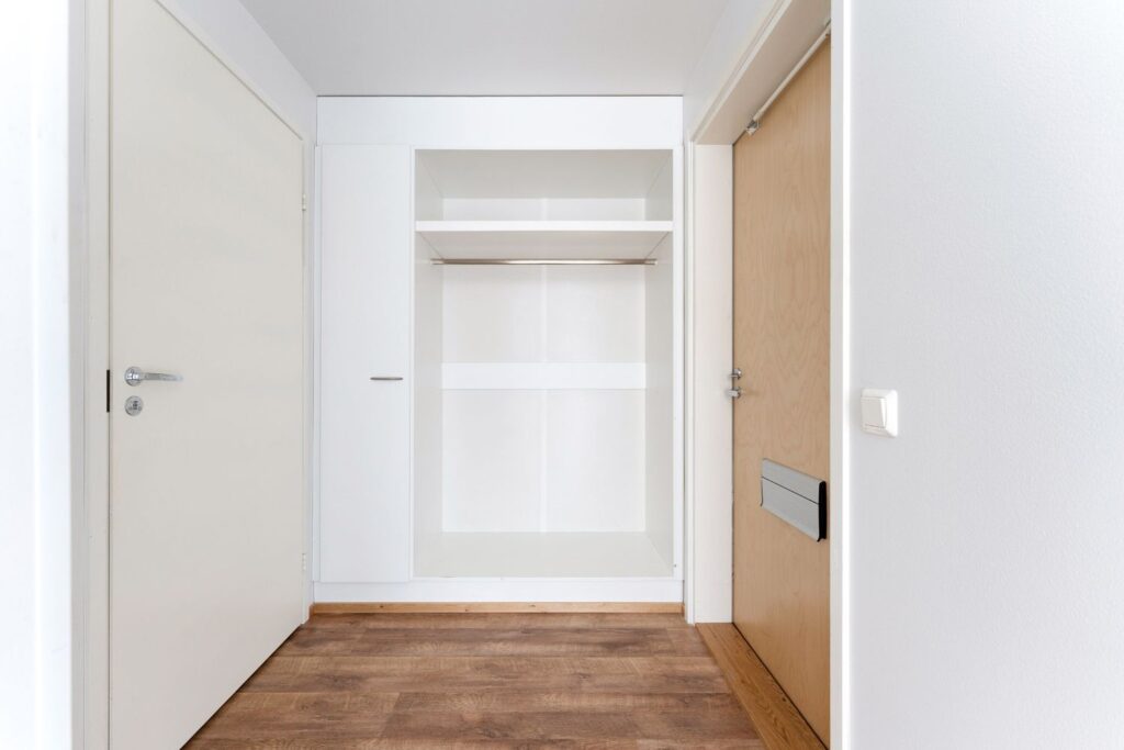 Huoneistokohtaiset lämpimät irtaimistovarastokomerot sekä yleinen ulkoiluvälinevarasto ja kuivaushuone sijaitsevat talon 1. kerroksessa.