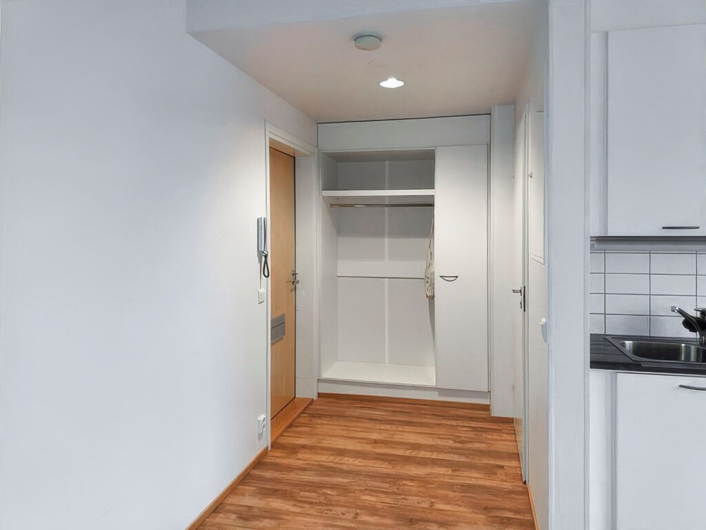 Huoneistokohtaiset lämpimät irtaimistovarastokomerot sekä yleinen ulkoiluvälinevarasto ja kuivaushuone sijaitsevat talon 1. kerroksessa.