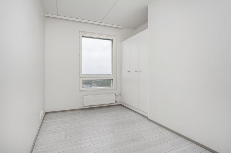 Hiukkavaarassa tarjolla viihtyisä kolmio seitsemännestä kerroksesta. Eteisessä on kaapistojen lisäksi tilaa vaatesäilytykseen myös vaatehuoneessa. Olohuone ja keittiö ovat mukavasti samaa avointa tilaa, jossa koko perhe viihtyy. Keittiökalustus on sijoitettu huoneen päätyyn. Vakiokalustukseen kuuluu, liesi, jääkaappi ja pakastin. Tilavaraukset omalle mikrolle sekä astianpesukoneelle ovat valmiina. Olohuoneesta on käynti omalle lasitetulle parvekkeelle. Makuuhuoneissa on hyvin kaappitilaa. Pesuhuoneessa on wc-kalustuksen lisäksi suihku, ja tilavaraus omalle pyykinpesukoneelle ja kuivausrummulle. Oman saunan lämmöstä voit nauttia silloin kun itse haluat. Asumismukavuutta lisää erillinen wc.