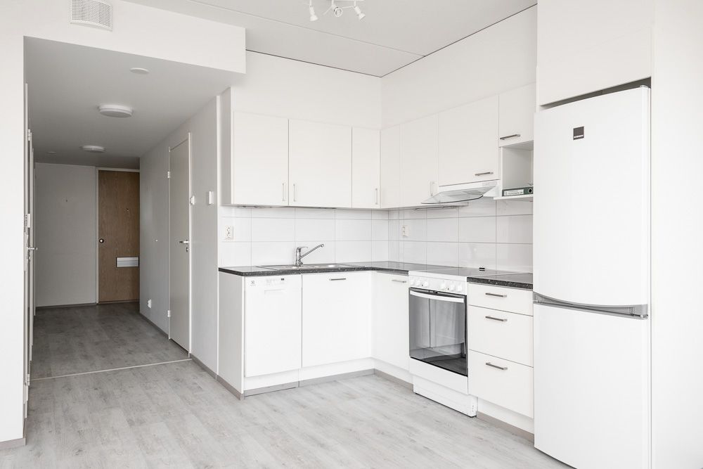 Viidennen kerroksen hyväpohjainen kaksio tarjolla suositulta alueelta, jonka erikoisuutena on ihanat vehreät viherkattopihat. Keittiö ja olohuone ovat yhtenäistä avaraa tilaa, josta pääsee asunnon pienelle lasitetulle parvekkeelle. Läpitalon asunto, jossa on ikkunoita kahteen ilmansuuntaan. Asunnossa on laminaattilattiat, ja kylpyhuone puolestaan on laatoitettu.