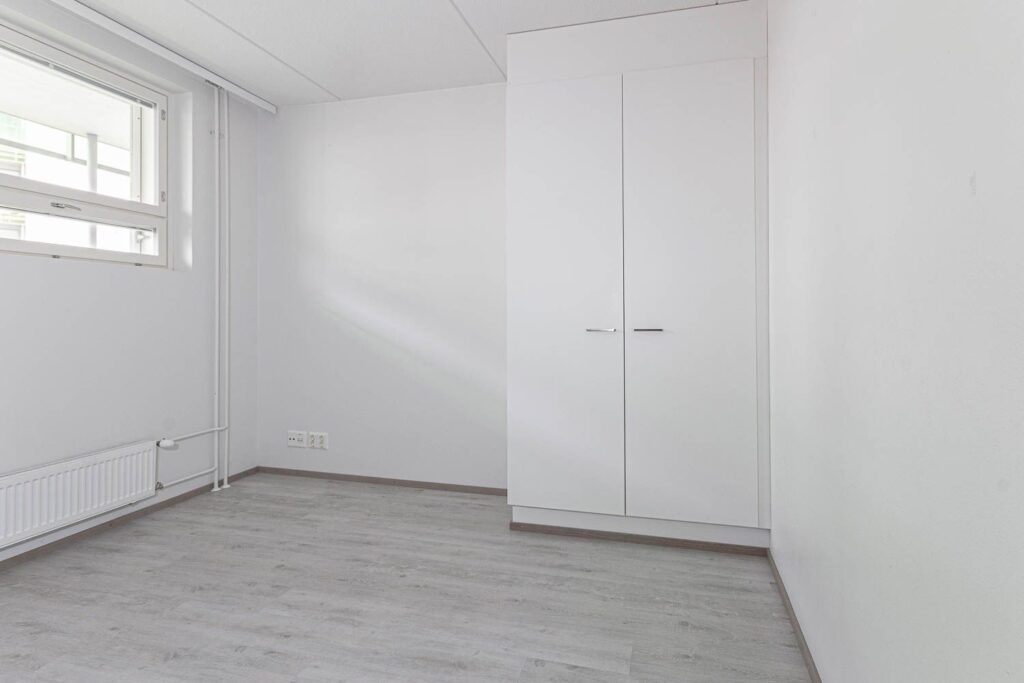 Asunnossa on laminaattilattiat, ja kylpyhuone puolestaan on laatoitettu. Tähän asuntoon on muutostyönä asennettu parvekelaseihin verhot, vessaan suihkukulma sekä eteiseen peililiukuovet. Asunnon irtaimistovarasto sijaitsee kätevästi asunnon sisällä, jonka lisäksi makuuhuoneessa on mukavasti kaappitilaa. Saunavuoron voi halutessaan varata ylimmän kerroksen talosaunasta, jonka yhteydessä on viihtyisä puutarhamainen vilvoitteluterassi.