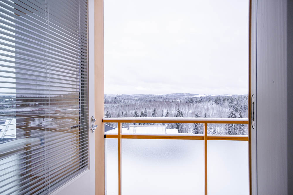 Saunallinen asumisoikeuskaksio Palokassa metsäisin näkymin.