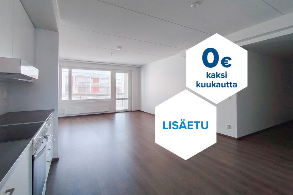 Tee sopimus nyt – saat kahden ensimmäisen kuukauden käyttövastikkeen hintaan 0 € ja vakuusmaksun 250 €. Edut ovat voimassa 15.4.2026 saakka ja koskevat vain uusia asiakkaita. Vesi- ja autopaikkamaksut normaalisti. Edellyttää 12 kuukauden asumista.