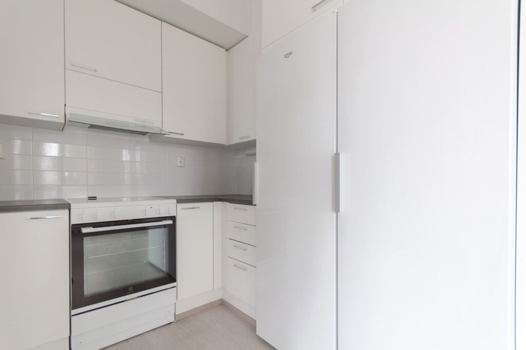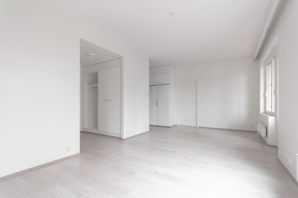 Vapaana toiseksi ylimmän (3/4) kerroksen valoisa kolmio, jossa neliöt on suunniteltu tehokkaasti. Keittiö ja olohuone muodostavat valoisan yhtenäisen tilan. Arjen apuna päämakuuhuoneen yhteydessä on erittäin tilava vaatehuone. Oma lasitettu parveke suuntautuu itään. Asumismukavuutta tuo oma sauna. Asunto vapaana.