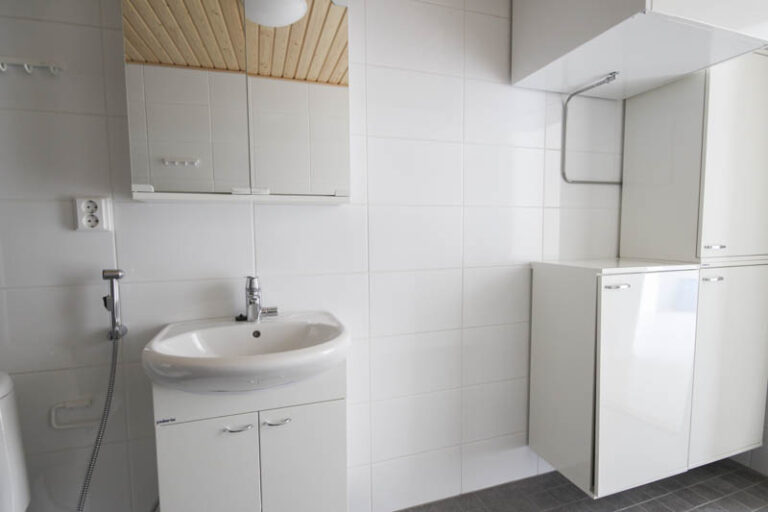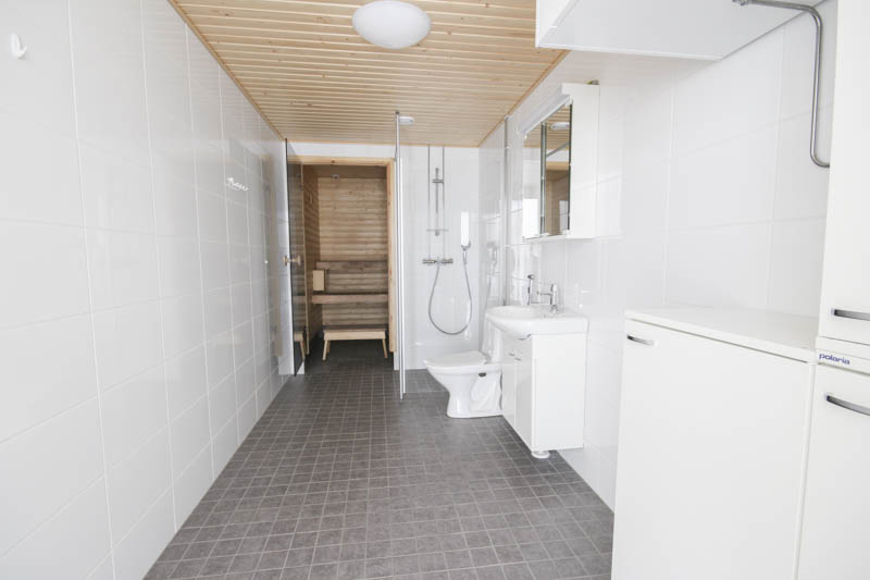 Asumismukavuutta lisäävät oma sauna, erillinen wc sekä vaatehuone, joka helpottaa arjen järjestystä ja säilytystä. Kylpyhuone on laatoitettu ja laminaattilattiat tuovat yhtenäisen ilmeen asuintiloihin. Lasitettu parveke tarjoaa mukavan lisätilan keväästä syksyyn – paikka aamukahville tai rauhalliselle hetkelle päivän päätteeksi.