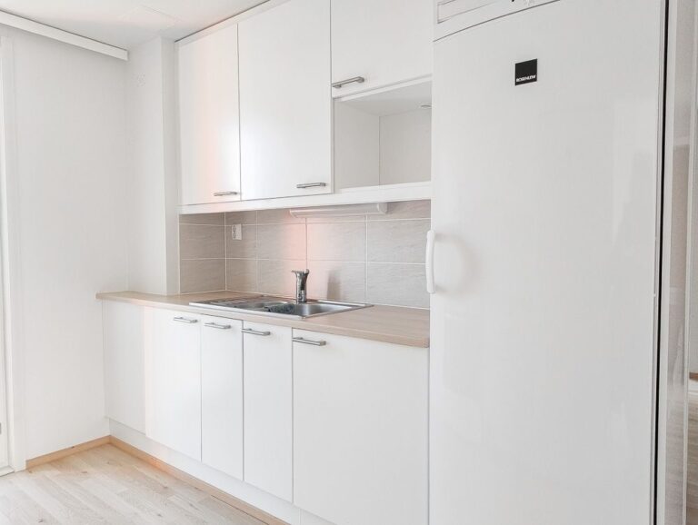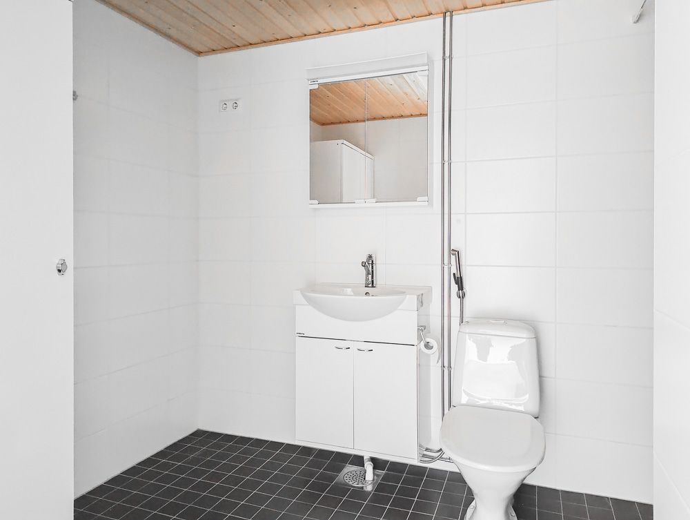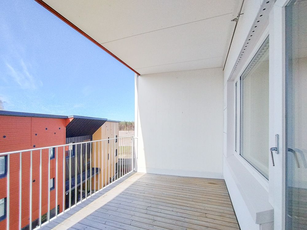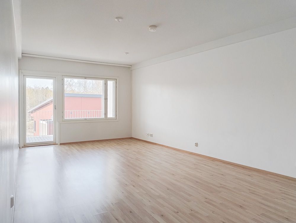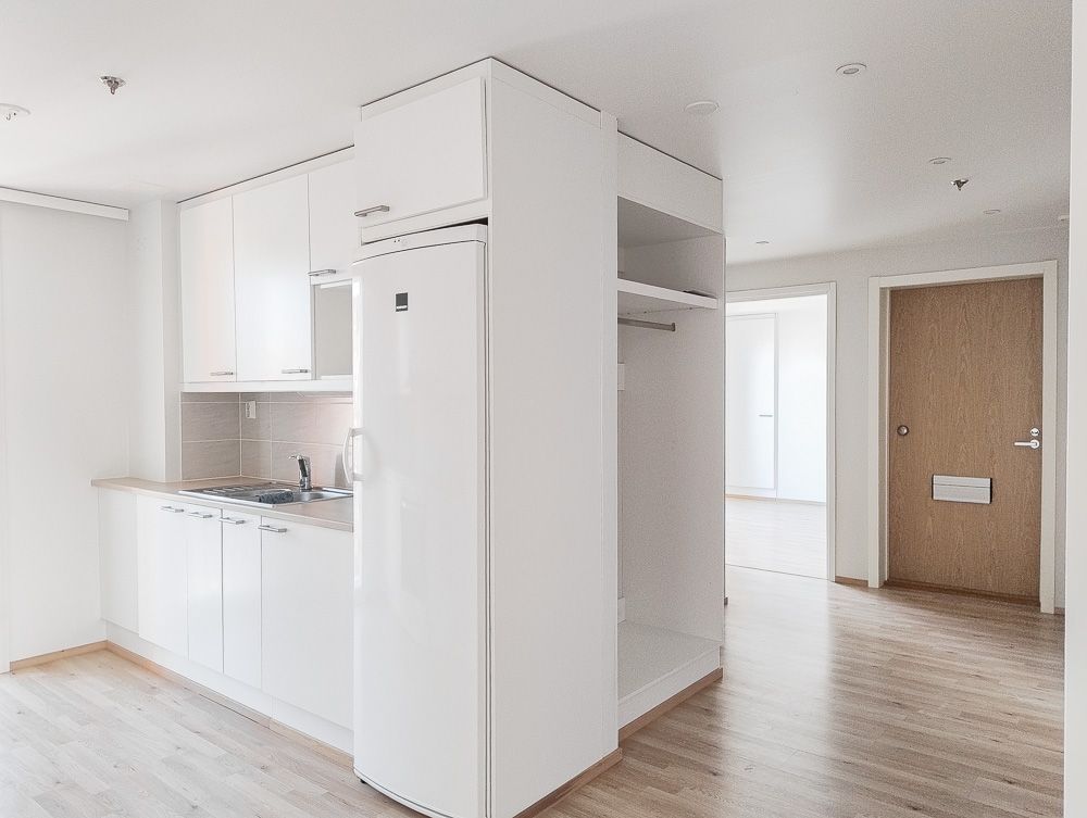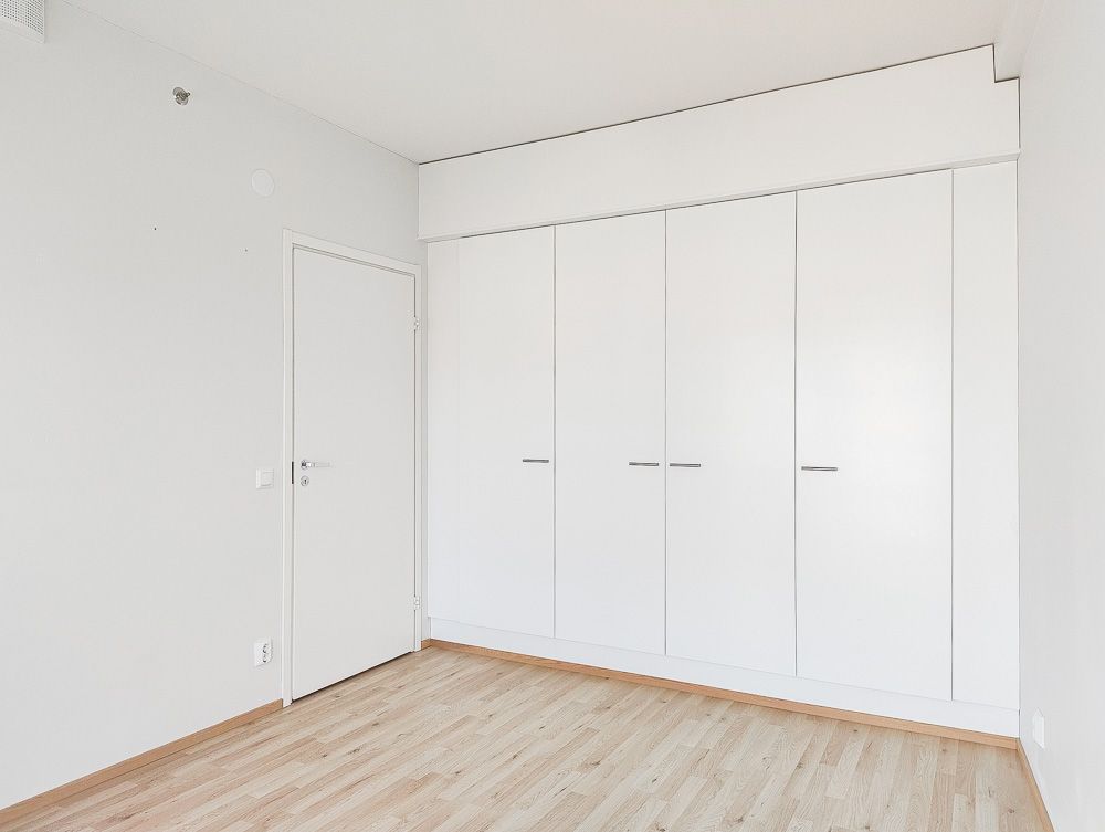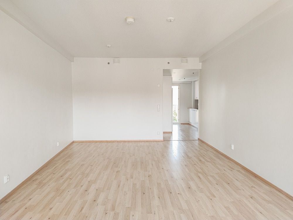 Tilava kolmio hissitalon ylimmässä kerroksessa. Tässä kodissa on kaksi parveketta. Toiselle on käynti olohuoneen puolelta ja toiselle pääsee makuuhuoneen kautta. Laatoitetussa kylpyhuoneessa on mukavasti tilaa myös pesutornille. Säilytystilaa on asunnon kaapistoissa.