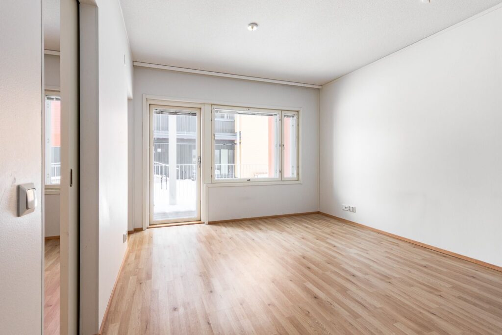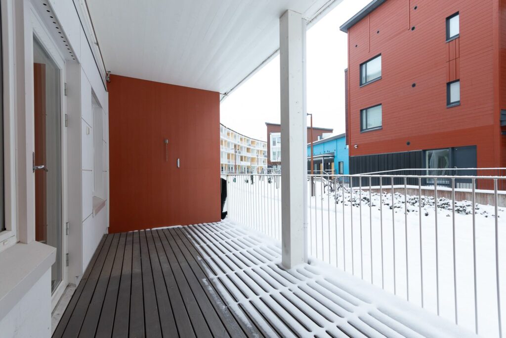 Ensimmäisen kerroksen kaksio puukerrostalossa