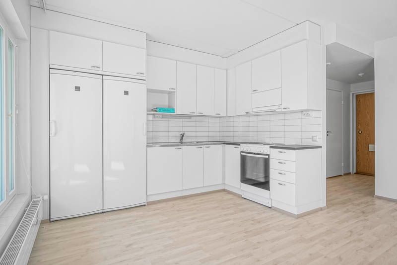 Asunnon sydämen muodostavat avara olohuone ja keittiö, jotka yhdistyvät miellyttäväksi oleskelutilaksi. Keittiöstä löytyy kaikki tarpeellinen arkeen: liesi, korkea jääkaappi, erillinen pakastinkaappi sekä varaukset astianpesukoneelle (60 cm) ja mikroaaltouunille. Tilasta on kulku omalle lasitetulle länsiparvekkeelle.