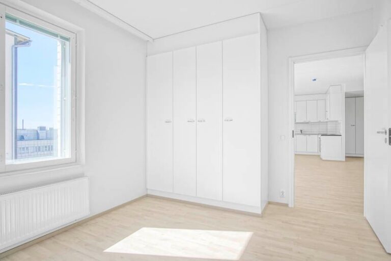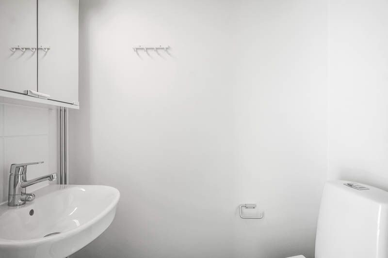 Eteisessä on käytännölliset säilytysratkaisut, sekä erillinen wc. Molemmat makuuhuoneet ovat hyvän kokoisia ja tarjoavat hyvin kaappitilaa.