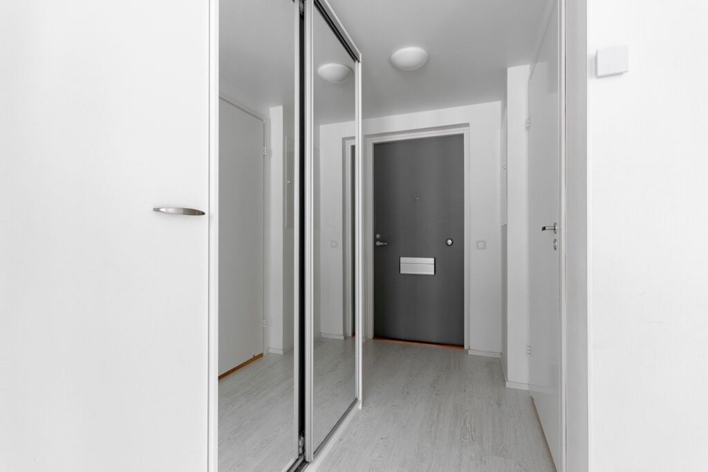 Vaaleansävyinen koti, jossa on avara ja arjessa toimiva pohjaratkaisu. Makuuhuoneen yhteydessä oleva vaatehuone tuo asuntoon säilytystilaa. Itäpuolella sijaitseva parveke on lasitettu, joten se on monipuolisesti käytettävissä läpi vuoden. Vaatehuoneeseen on muutostyönä asennettu lisähyllyjä (huom. huoneistokuvat otettu ennen muutostyötä).