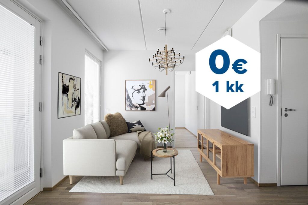 Tee sopimus nyt – saat ensimmäisen kuukauden käyttövastikkeen 0 €. Etu on uusille asukkaille ja koskee kaikkia muuttovalmiita ja vapaita ASO-asuntoja. Vesi- ja autopaikkamaksut veloitetaan normaalisti. Etu on voimassa 15.4.2026 mennessä tehtyihin sopimuksiin. Lue lisää kampanjaedusta.