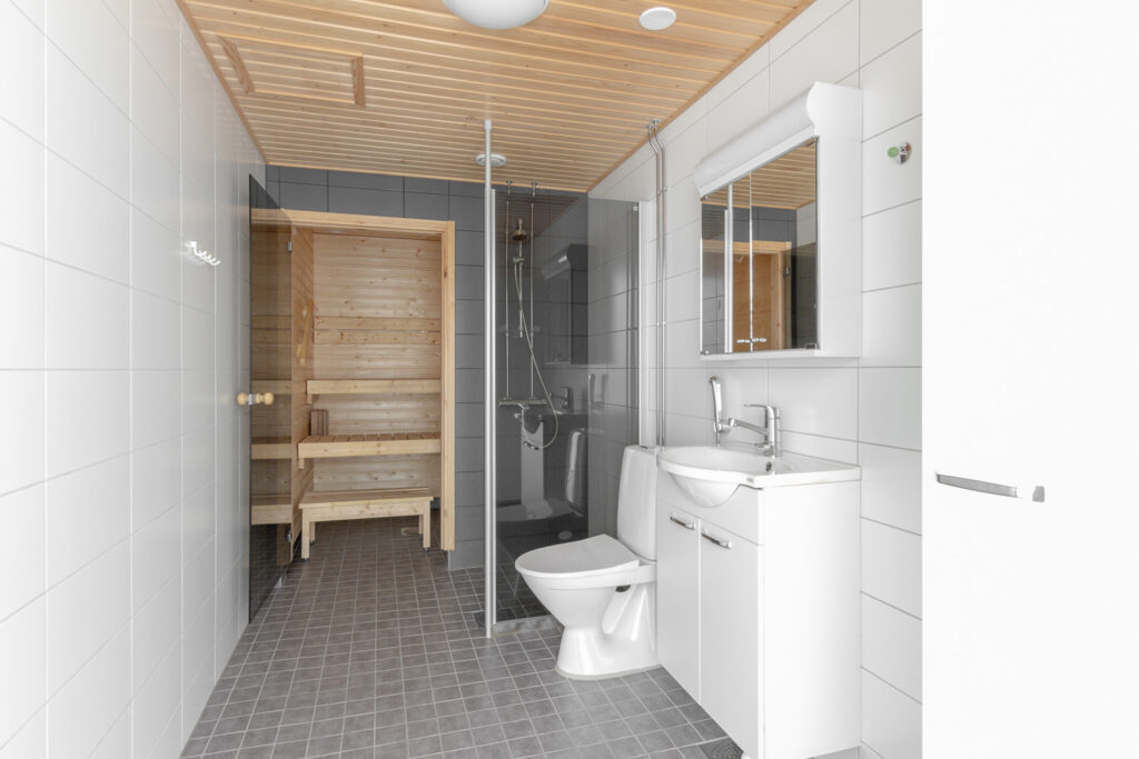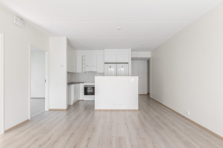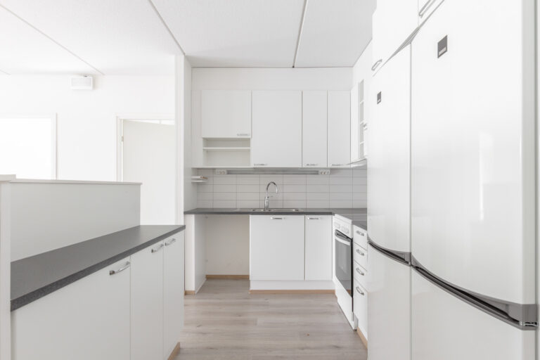 Ylimmän kerroksen toimiva kolmio. Avara keittotila ja olohuone muodostavat yhtenäisen, valoisan oleskelutilan pienen avosaarekkeen ansiosta. Asunnossa on kaksi makuuhuonetta, joiden suuret ikkunat tuovat runsaasti luonnonvaloa asuntoon. Tilava kylpyhuone ja oma sauna lisäävät asumismukavuutta. Lasitettu parveke toimii kesäisin viihtyisänä lisätilana.