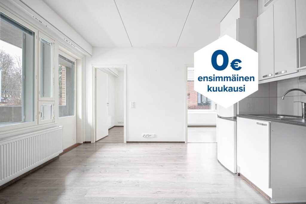 Tee sopimus nyt – saat ensimmäisen kuukauden käyttövastikkeen hintaan 0 €. Etu on voimassa 15.4.2026 saakka ja koskee uusia asiakkaita. Vesi- ja autopaikkamaksut normaalisti.