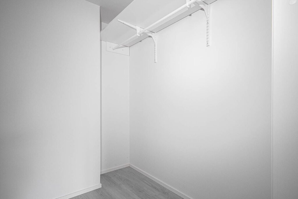 Kaksiossa on suuri makuuhuone, jossa yhdistettynä valtava vaatehuone! Tämä yhdistelmä luo mahdollisuuden tehdä tilasta monikäyttöisen. Perheille on tilasta mahdollista luoda esimerkiksi useammalle henkilölle huone tai työhuone!