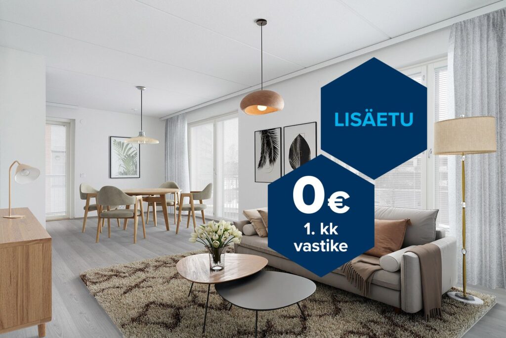 Vapaana viehättävä ja moderni kaksio, jossa on oma sauna ja tilava parveke lounaaseen päin. Asunnon makuuhuoneen yhteydessä on myös käytännöllinen vaatehuone lisäämässä säilytystilaa. Tämä tilava kaksio on kulmahuoneisto, johon tulee valoa kahdesta ilmansuunnasta. Keittiö on omassa kulmauksessaan, mutta avautuu olohuoneeseen. Ruokapöydän saa kätevästi keittiön läheisyyteen.