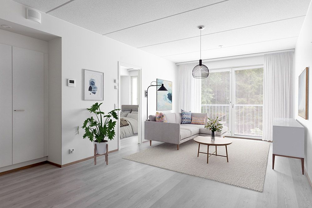 Asunnossa on avara ja valoisa keittiö-olohuonetila, mikä luo tilan tuntua ja sopii erinomaisesti nykyaikaiseen elämäntyyliin. Makuuhuoneen yhteydessä hyvän kokoinen vaatehuone.