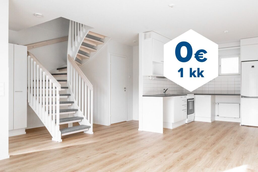 Tee sopimus nyt – saat ensimmäisen kuukauden käyttövastikkeen hintaan 0 €. Etu on voimassa 15.4.2026 saakka ja koskee uusia asiakkaita. Vesi- ja autopaikkamaksut normaalisti.