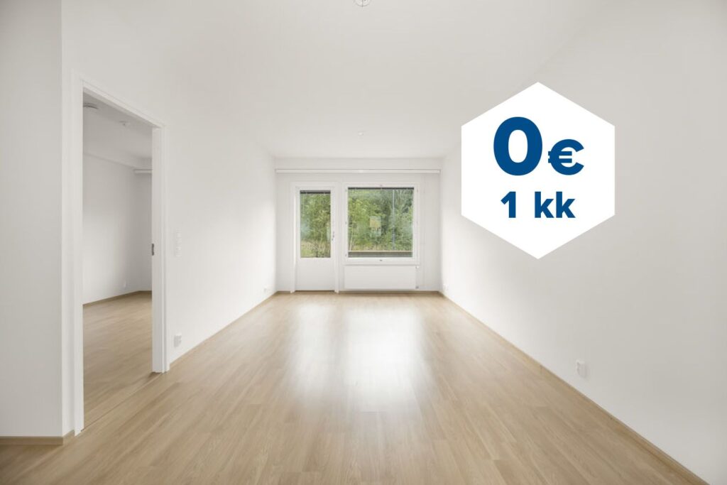 Tee sopimus nyt – saat ensimmäisen kuukauden käyttövastikkeen hintaan 0 €. Etu on voimassa 15.4.2026 saakka ja koskee uusia asiakkaita. Vesi- ja autopaikkamaksut normaalisti.