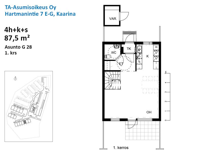 Tämä kaksitasoinen rivitalokoti tarjoaa puitteet rauhalliseen ja huolettomaan asumiseen. Kodin sydän on keittiö, joka avautuu luontevasti olohuoneeseen. Olohuoneesta käynti omalle takapihalle. Yläkerrassa kolme makuuhuonetta ja saunallinen pesutila. Asunnon lattiat ovat laminaattia, seinät valkoiseksi maalattu ja kylpyhuone laatoitettu. Sisäkuvat ovat kohteen toisesta samanlaisesta asunnosta. Asunnon aiempi vapautuminen on mahdollista.