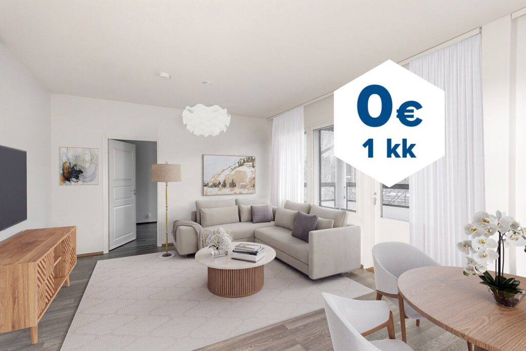 Tee sopimus nyt – saat ensimmäisen kuukauden käyttövastikkeen hintaan 0 €. Etu on voimassa 15.4.2026 saakka ja koskee uusia asiakkaita. Vesi- ja autopaikkamaksut normaalisti.