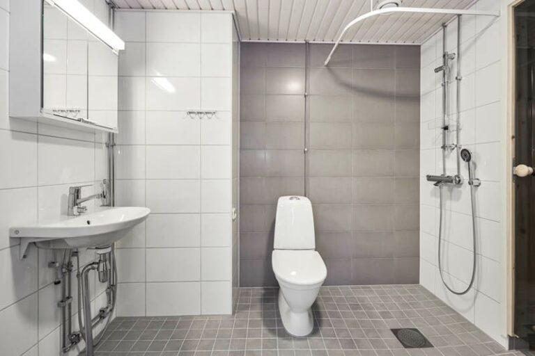 Ylimmän kerroksen saunallinen kaksio. Asunnon kahteen suuntaan avautuvat ikkunat tuovat valoa. Lasitettu parveke on pohjoiseen. Kuvat ovat vastaavasta peilikuvana olevasta asunnosta. Materiaalien värisävyt saattavat poiketa kuvista.