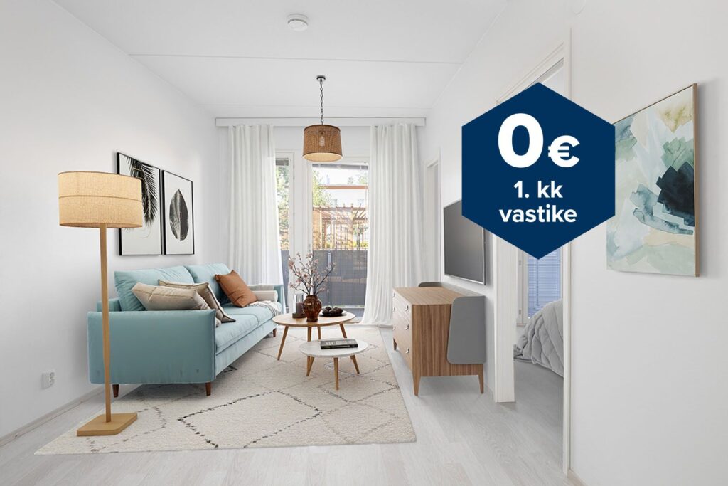 Ensimmäisen kerroksen moderni kaksio tarjoaa toimivan pohjaratkaisun ja mukavat asumisolosuhteet. Keittiö yhdistyy avaraan ja tilavaan olohuoneeseen, jossa suuret ikkunat tuovat runsaasti luonnonvaloa. Asunnolla on oma huoneiston levyinen tilava parveke sisäpihan suuntaan, ja läpitalon asuntoon tulee mukavasti valoa kahdesta ilmansuunnasta. Keittotilassa on vakiovarusteena induktioliesi ja tilavaraus astianpesukoneelle. Asunnossa on laminaattilattiat ja kylpyhuoneen seinät ja lattia ovat laatoitetut. Kylpyhuoneessa on tilavaraus pyykinpesukoneelle sekä säilytystilaa allas- ja peilikaapeissa sekä pyykkikaapissa. Saunavuoron voi halutessaan varata viihtyisästä talosaunasta