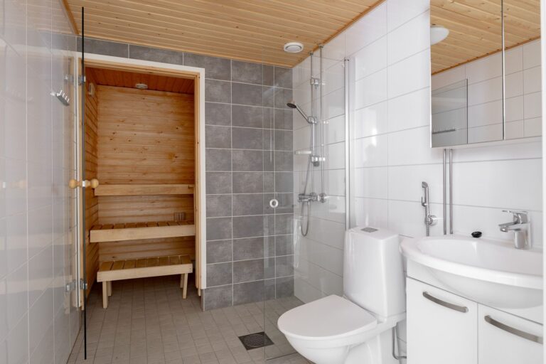 Asunnosta löytyy saunan lisäksi kaksi suihkua sekä vessaa joka tekee arjesta sujuvampaa. Sisäänkäynnin yhteydestä löytyy oma viihtyisä pieni piha-alue.