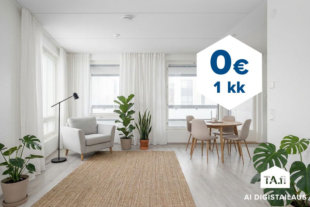 Tee sopimus nyt – saat ensimmäisen kuukauden käyttövastikkeen hintaan 0 €. Etu on voimassa 15.4.2026 saakka ja koskee vain vapaita asuntoja ja uusia asiakkaita. Vesi- ja autopaikkamaksut normaalisti.