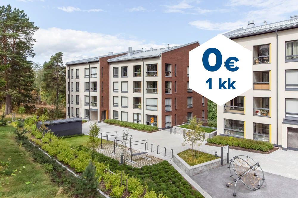 Tee sopimus nyt – saat ensimmäisen kuukauden käyttövastikkeen hintaan 0 €. Etu on voimassa 15.4.2026 saakka ja koskee vain vapaita asuntoja ja uusia asiakkaita. Vesi- ja autopaikkamaksut normaalisti.
