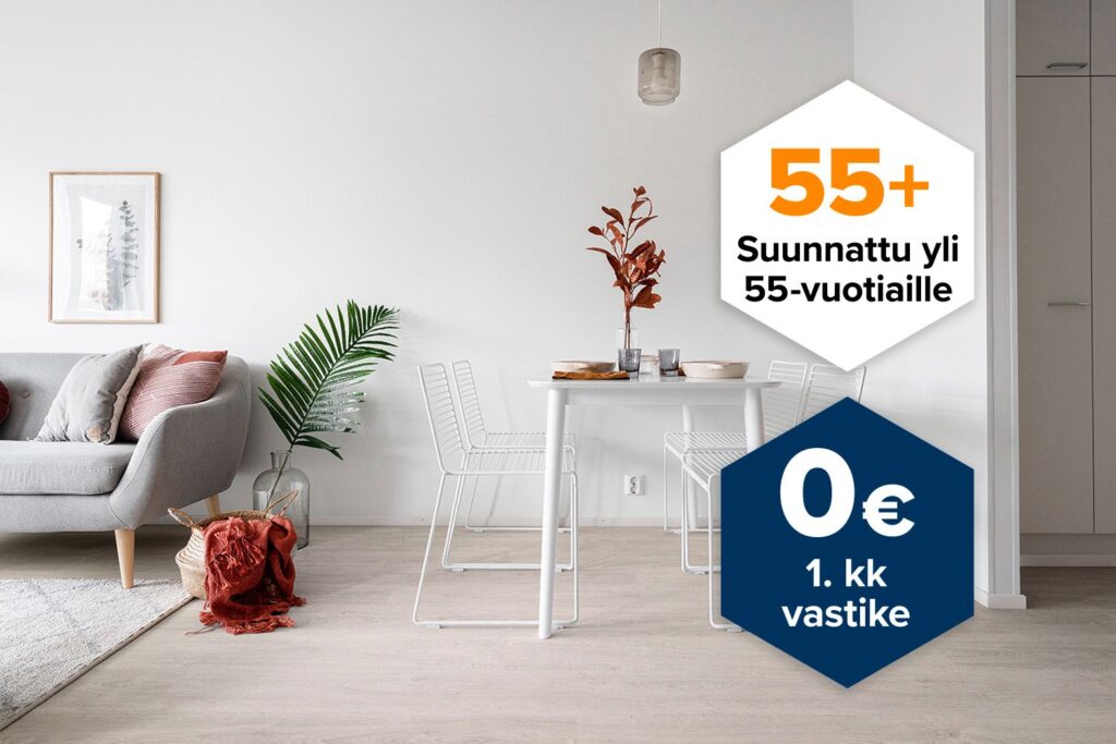 Valoisa ja toimivapohjainen kaksio kolmannessa kerroksessa Kuopion Blominkadulla. Asunnossa on avara olohuone, johon yhdistyy keittiö ruokailutiloineen. Makuuhuone tarjoaa rauhallisen paikan levätä, ja säilytystilaa löytyy hyvin kaapistoista. Tilavasta kylpyhuoneesta löytyy myös paikka pyykinpesukoneelle. Asunnon kruunaa lasitettu parveke. Hissillä pääsee vaivattomasti kotiovelle asti. Kohde on suunnattu yli 55-vuotiaille. Alle 55-vuotiaat voivat tulla hyväksytyiksi vain, jos tarjouskierroksella ei ole 55-vuotta täyttäneitä ko. asunnon vastaanottajia. Käyttövastike 1.1.2026 alkaen 585,96 €/kk.
