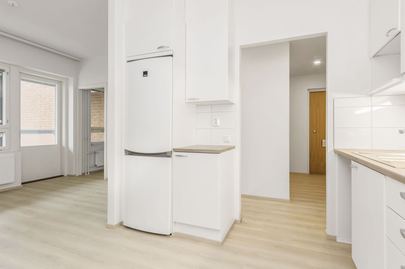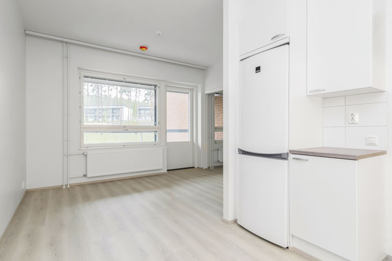 Kodin tilat muodostuvat olohuoneesta ja makuuhuoneesta sekä käytännöllisestä keittotilasta, joka on luontevasti osa oleskelutilaa. Olohuoneeseen on helppo sisustaa oma paikka niin arki-illoille kuin viikonlopun rentoutumiselle, ja makuuhuoneessa on tilaa sängyn lisäksi säilytykselle.