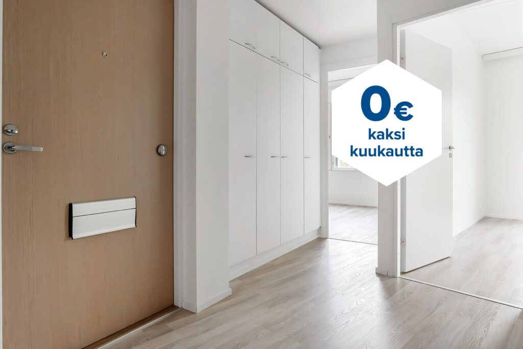 Tee sopimus nyt – saat kahden ensimmäisen kuukauden käyttövastikkeen hintaan 0 € ja vakuusmaksun 250 €. Edut ovat voimassa 15.4.2026 saakka ja koskevat vain vapaita asuntoja ja uusia asiakkaita. Vesi- ja autopaikkamaksut normaalisti. Edellyttää 12 kuukauden asumista.