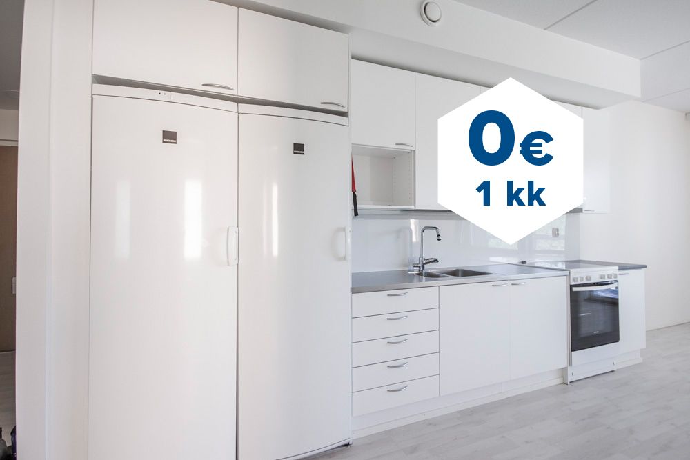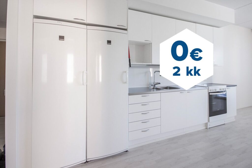 Tee sopimus nyt – saat kahden ensimmäisen kuukauden käyttövastikkeen hintaan 0 € ja vakuusmaksun 250 €. Edut ovat voimassa 15.4.2026 saakka ja koskevat vain vapaita asuntoja ja uusia asiakkaita. Vesi- ja autopaikkamaksut normaalisti. Edellyttää 12 kuukauden asumista.