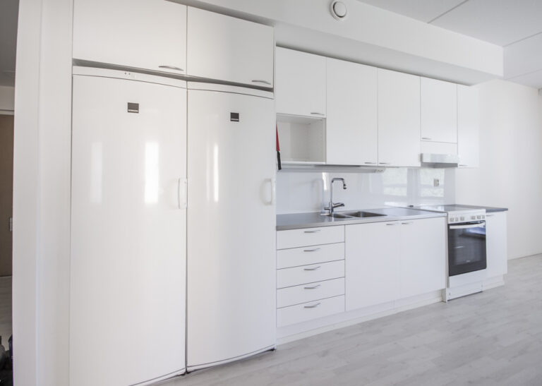 Vaaleasävyinen asunto on helppo sisustaa omannäköiseksi. Asunnon lattiat ovat laminaattia, ja kylpyhuoneessa on tyylikkäät laatoitetut seinät ja lattiat. Kylpyhuoneessa on tilavaraus pyykinpesukoneelle tai pesutornille, ja säilytystilaa on peili- ja allaskaapeissa sekä pyykkikaapissa. Keittiössä on erilliset jääkaappi ja pakastinkaappi, keraaminen liesi sekä tilavaraukset astianpesukoneelle ja mikrolle. Talossa on yhteinen viihtyisä saunatila, josta voi varata oman saunavuoron.