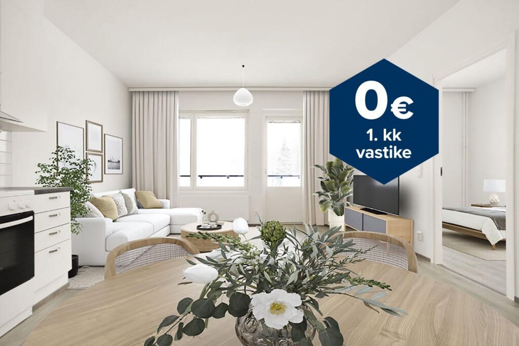Tee sopimus nyt – saat ensimmäisen kuukauden käyttövastikkeen hintaan 0 €. Etu on voimassa 15.4.2026 saakka ja koskee uusia asiakkaita. Vesi- ja autopaikkamaksut normaalisti.