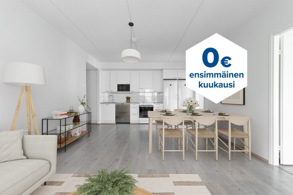 Tee sopimus nyt – saat ensimmäisen kuukauden käyttövastikkeen hintaan 0 €. Etu on voimassa 15.4.2026 saakka ja koskee uusia asiakkaita. Vesi- ja autopaikkamaksut normaalisti.