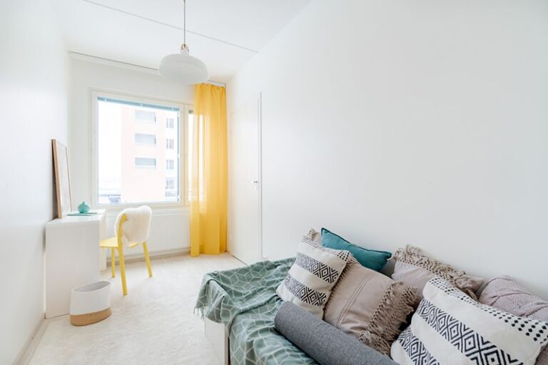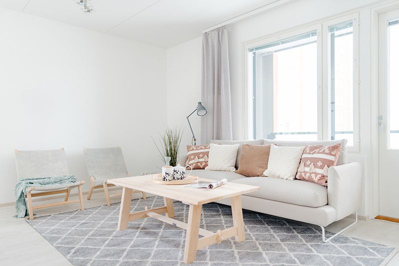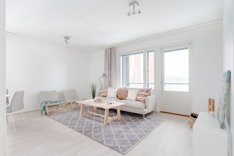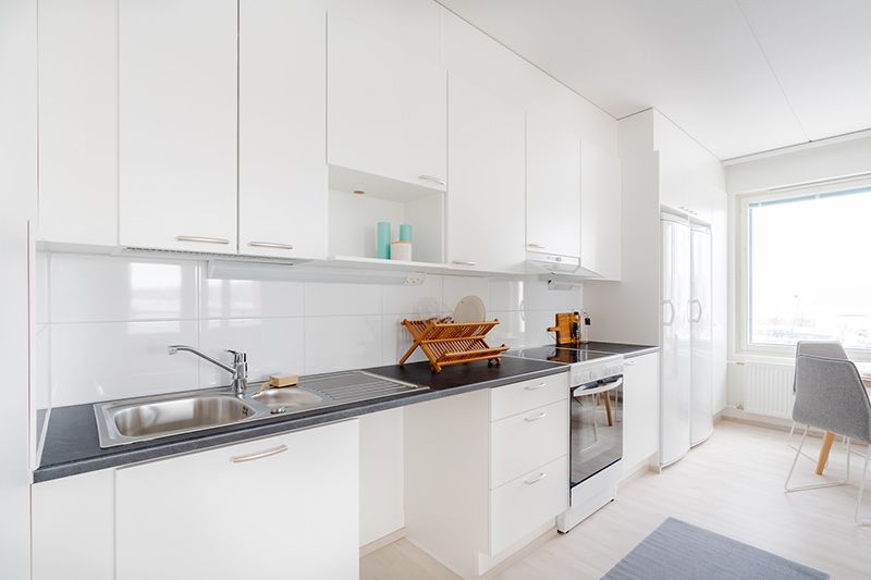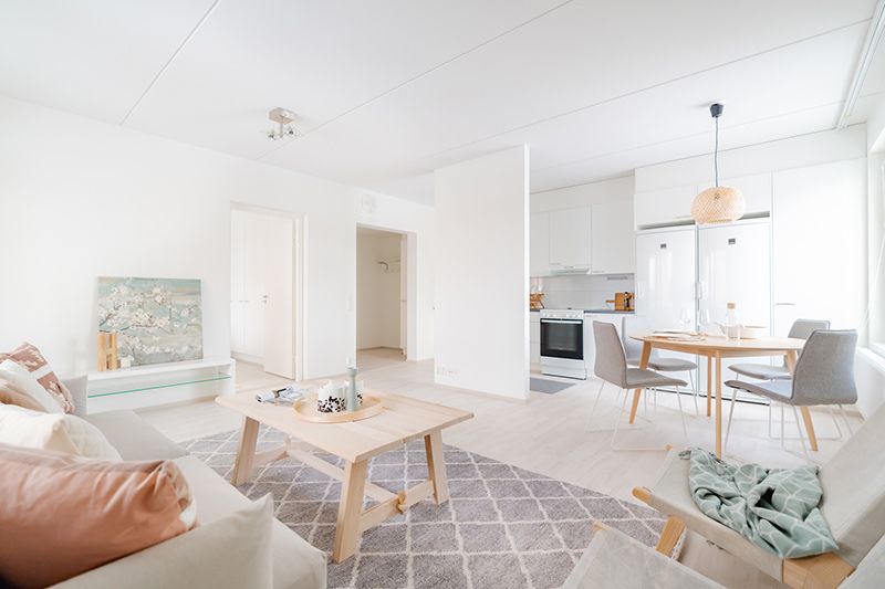 Vapautumassa kolmannen kerroksen reilu kolmio rauhalliselta Äijälänrannan alueelta. Huoneisto käsittää olohuoneen ja keittiön yhdistelmän, kaksi makuuhuonetta, vaatehuoneen, kylpyhuoneen saunoineen sekä parvekkeen. Säilytystilaa on reilusti ja keittiö on ikkunansa ja yhdelle seinälle sijoittuvien kalusteiden ansiosta valoisa ja käytännöllinen.
