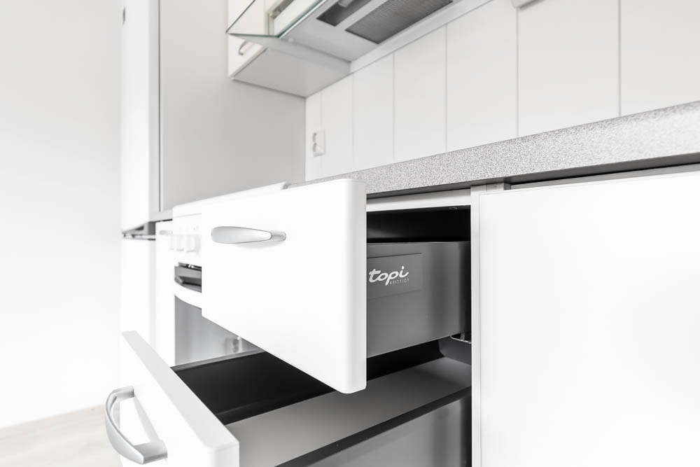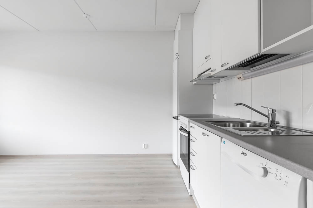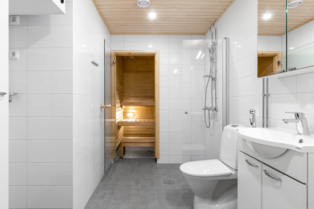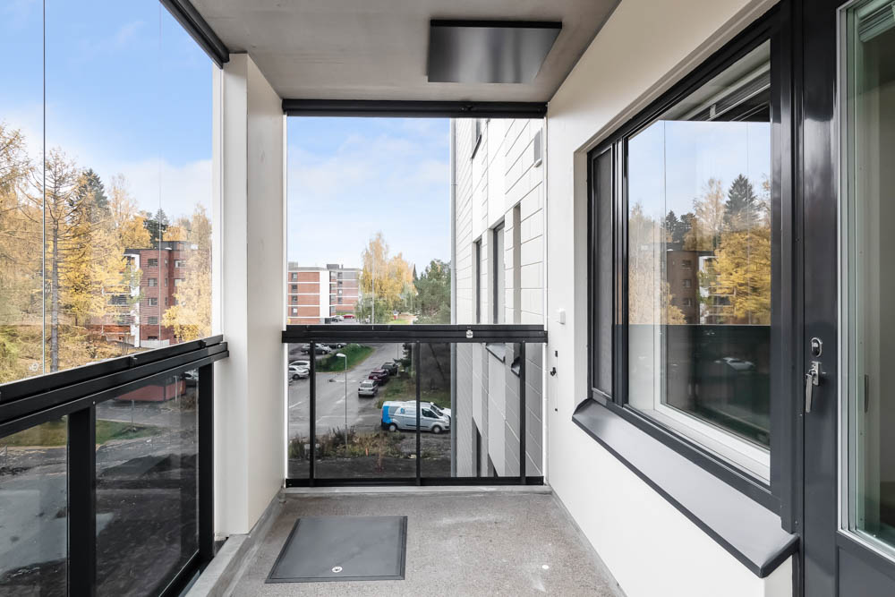 Olohuoneesta on käynti itään avautuvalle lasitetulle parvekkeelle, jossa aamukahvi tai rauhallinen hetki onnistuu säästä riippumatta. Keittotila on luontevasti yhteydessä oleskelutilaan, ja makuuhuone tarjoaa rauhallisen paikan levolle. Oman saunan lämpö kruunaa päivän ja tuo arkeen mukavuutta.