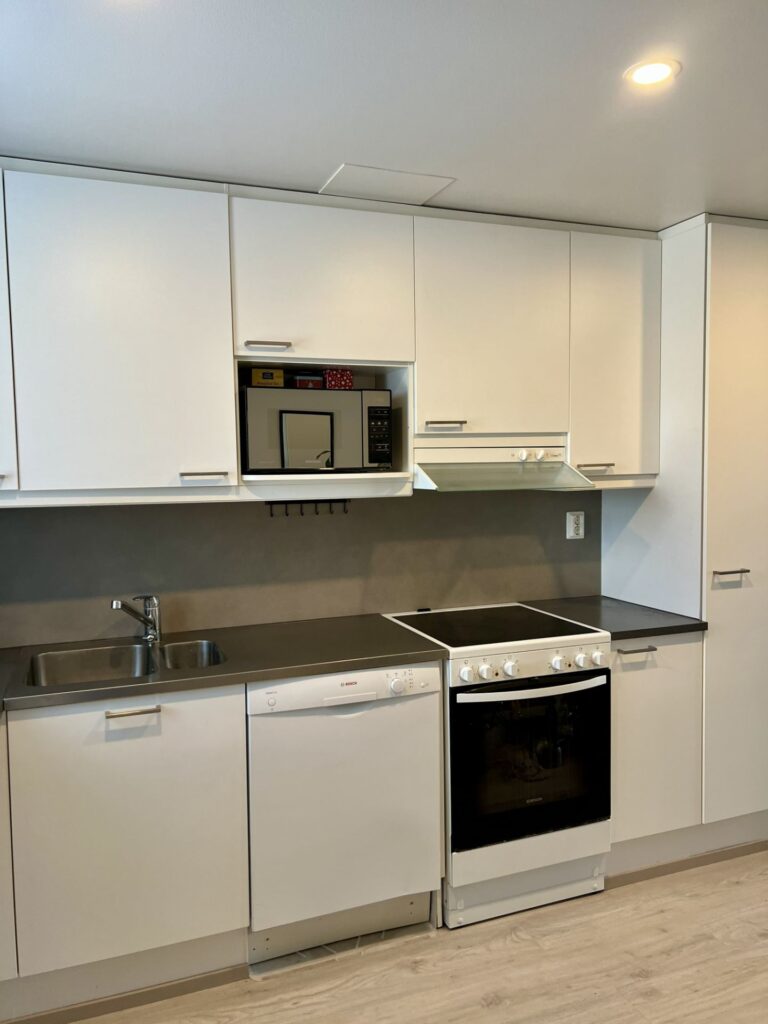 Asuntoon tulee valoa vähintään kahdesta ilmansuunnasta, ja pohjaratkaisu on avara. Neutraalit pintamateriaalit toimivat hyvänä pohjana monenlaiselle sisustukselle. Lattiat ovat helppohoitoista laminaattia, ja kylpyhuoneessa ja erillisessä wc:ssä on tyylikkäät laatoitetut seinät ja lattiat. Kylpyhuoneessa on tilavaraus pyykinpesukoneelle ja kuivausrummulle, ja säilytystilaa on pyykki- ja peilikaapeissa. Asumiseen lisämukavuutta tuovat oma sauna sekä suihku myös alakerran wc:n yhteydessä. Keittiön varusteluun kuuluu keraaminen liesi ja tilavaraukset astianpesukoneelle sekä mikroaaltouunille. Sälekaihtimet ikkunoissa lisäävät asumisviihtyvyyttä.