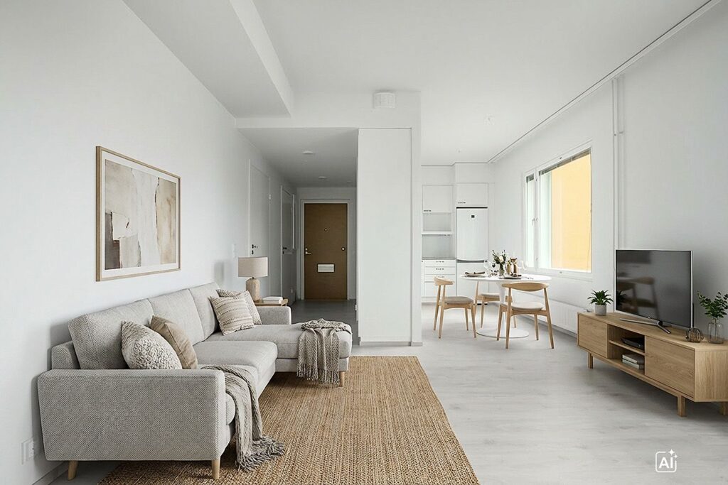 Tarjolla valoisa kulmahuoneisto, joka tarjoaa selkeän ja toimivan pohjaratkaisun. Avara olohuone yhdistyy luontevasti keittiönurkkaukseen ja ruokailutilaan muodostaen viihtyisän kokonaisuuden arkeen.