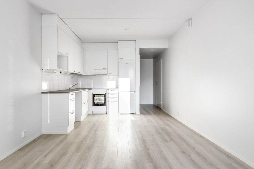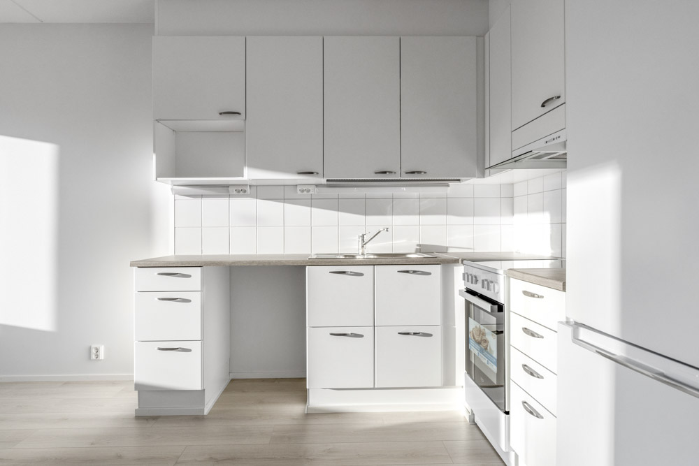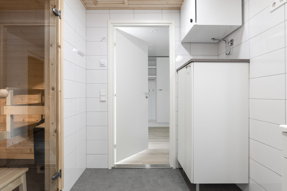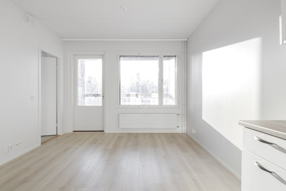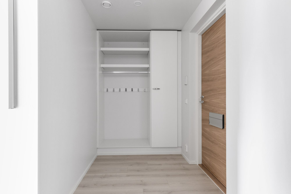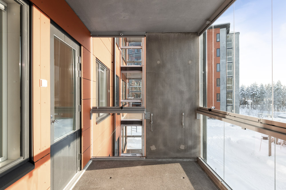 Tilava kaksio, jossa on toimiva pohjaratkaisu. Makuuhuoneen yhteydessä on vaatekomero, joka tuo runsaasti säilytystilaa asuntoon. Keittiössä on paljon laskutilaa, mikä helpottaa ruoanlaittoa. Asunnon lasitettu parveke toimii kesällä lisähuoneena ja sinne pääset vilvoittelemaan oman saunan löylyjen jälkeen. Sisäkuvat otettu vastaanlaisella pohjaratkaisulla varustetusta huoneistosta. Materiaalien sävyt saattavat poiketa toisistaan.