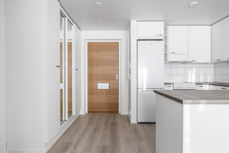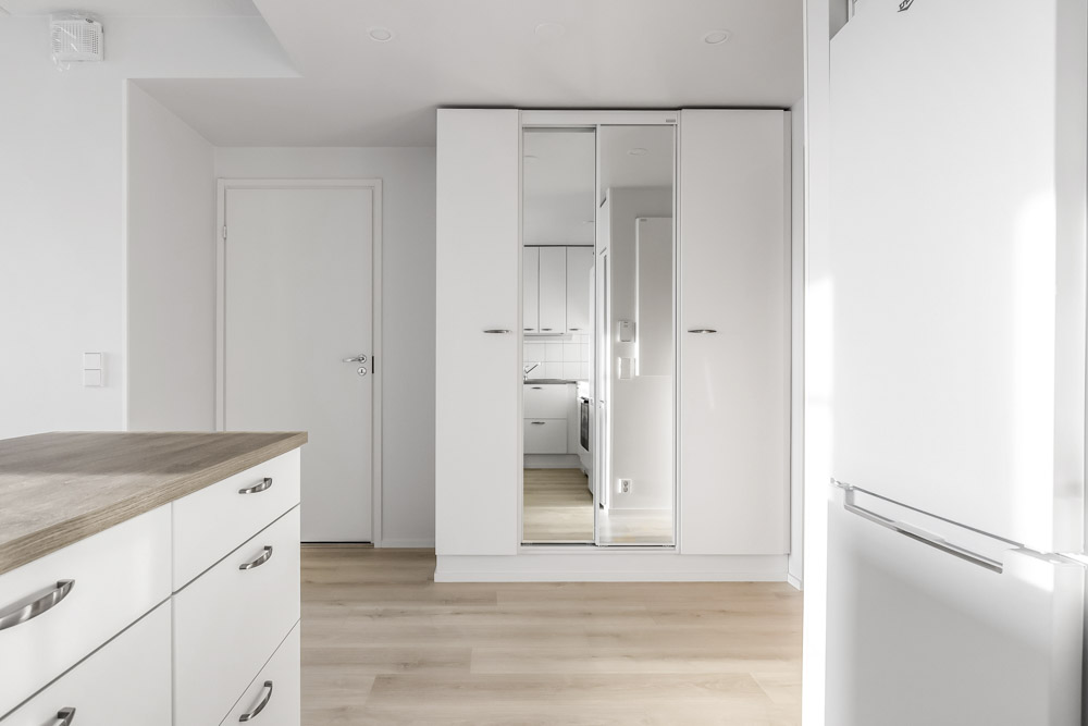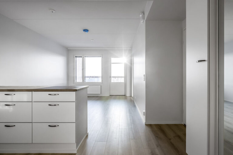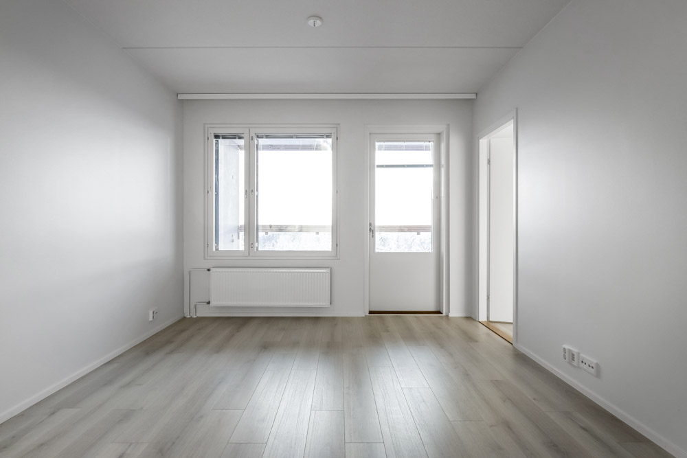 Kompakti kaksio toimivalla pohjaratkaisulla hissitalon toisessa kerroksessa. Makuuhuoneen kaapistossa on runsaasti säilytystilaa. Keittiössä on paljon laskutilaa, mikä helpottaa ruoanlaittoa. Tilava lasitettu parveke toimii kesällä lisähuoneena. Sisäkuvat otettu vastaavanlaisella pohjaratkaisulla varustetusta huoneistosta, materiaalien sävyt saattavat poiketa toisistaan.