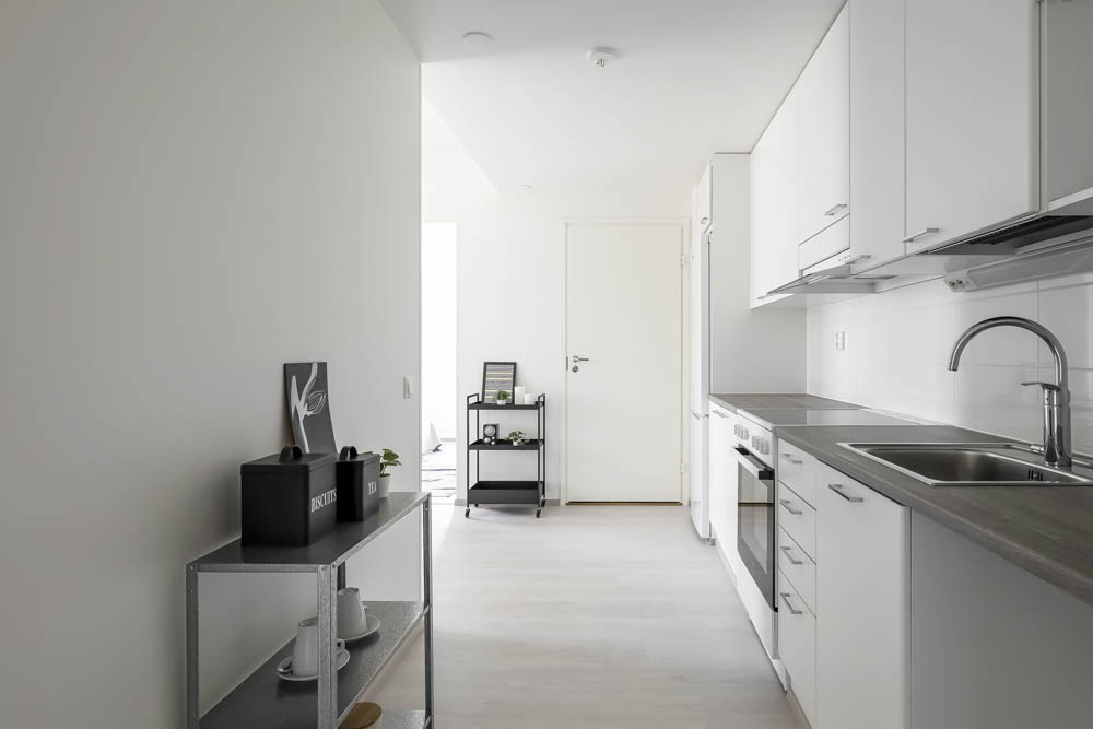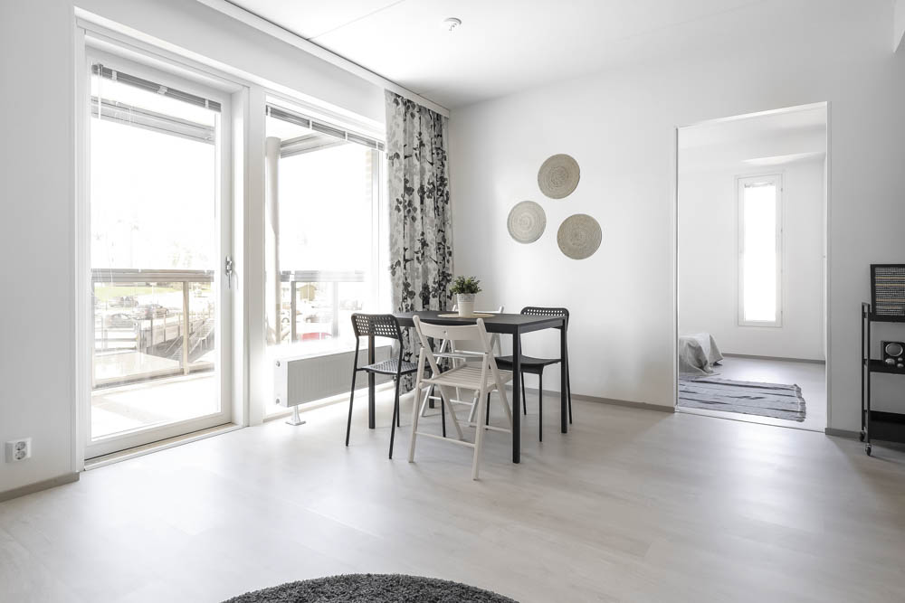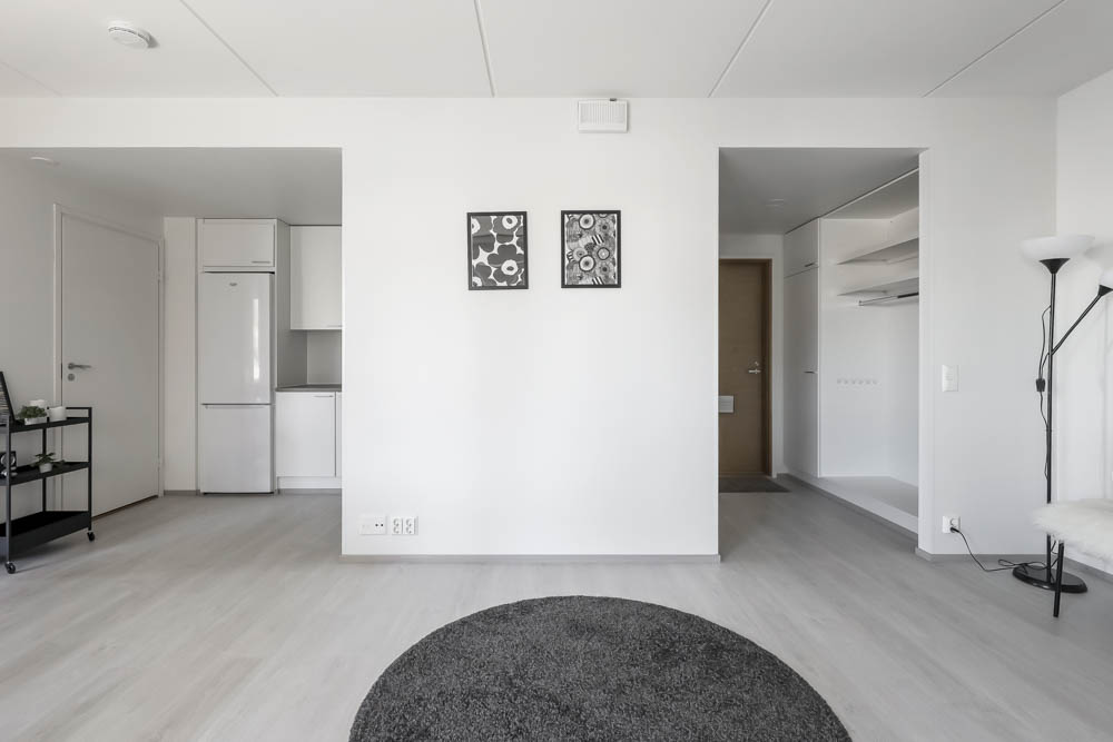 Tilava kaksio, jossa on toimiva ja avara pohjaratkaisu. Eteisen avonaulakkoon on lisä- ja muutostyönä asennettu ovet. Makuuhuoneen kaapistossa on reilusti säilytystilaa. Ikkunoita on pohjoiseen sekä länteen päin, lasitettu parveke länteen.